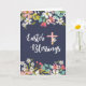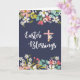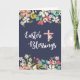 Hübsche Blume sind oben und unten auf einem dunkelmarineblau blauen Hintergrund zu sehen. Ostern Segnungen sind jedem mit einem Christlichen Thema gewünscht. Neben der Nachricht befindet sich ein Kreuz mit einer weißen Blume.