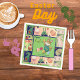 Schöne farbenfrohe Collage Serviette mit einem Osterhasen in der Mitte. Dieses niedliche, skurrile, coole Collage Design hat orange, blau, grün und lachsrosa Farbtöne rund um den Mittelplatz und ein niedliches Osterhasen auf grünem Hintergrund in der Mitte. Es hat den Happy Oaster Gruß und auch einen Familiennamen; beide können leicht durch Ihren ersetzt werden. Sie können Ihren Firmennamen anstelle Ihres Familiennamen darauf setzen. Das Hotel ist ideal für einen Osterurlaub, den Sie in Ihrem Speisesaal oder in der Küche verweilen können. Karo der Auflistung für die Koordination von Elementen.