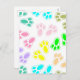 Niedlicher Cartoon-Stil helle Pfotendrucke. Individuell gestaltete Ferienpostkarten. Geschenkidee.
