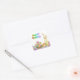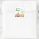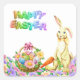 Osterhasen-quadratischer Aufkleber wird mit einem festlichen Ostersonnendruck mit einem Happy Oaster Text gezeigt. Passen Sie dieses Objekt an oder kaufen Sie, wie es ist. Börsenbild www.freepik.com