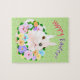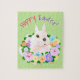 Sonnig in einem Frühlingsblumenkranz mit Schmetterlingen.