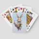 Karten spielen mit einem fröhlichen Kaninchen in blauer Kleidung, der einen Korb mit farbenfrohen, dekorierten Eiern trägt.