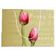 Edelgold Pergament mit "Happy Oaster" Typografie und 2 rosa Tulpen.