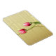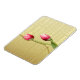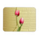 Edelgold Pergament mit "Happy Oaster" Typografie und 2 rosa Tulpen.