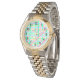 Diese Frauenuhr hat ein Osterdesign aus vertikalen, horizontalen und diagonalen Linien, die das Design in hellen Osterfarben überqueren.