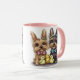 Niedliche Darstellung von Yorkshire Terrier Hunden, die zu Ostern verkleidet sind. Ideal für Liebhaber von Haustieren oder Hundeeltern zu Ostern.