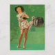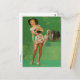 Funny PinUp card showing a beautiful Pin-Up Girl, got picked skirt by an ostich, painted by Art Frahm (1907-1981)