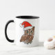 Unsere niedliche kleine Ostschrei-Eule (rote Phase) ist zum Weihnachten total bereit! Eule trägt einen roten Weihnachtsmann-Hut und eine resolute Feiertagshaltungsinstallation dieses Vogels zur Schau, der manchmal als das mit Federn versehene Kätzchen bekannt ist.