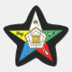 Sternförmiger Aufkleber mit dem Oststern auf einem schwarzen Hintergrund. Der Stern sieht hier umgedreht aus, aber Sie drehen das Blatt der Aufkleber umgedreht und sie sind fein!