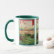 Otsuki Fields Kai outsuki no hara. (Otsuki Felder in der Provinz Kai). Schöne japanische Print Designer-Tasse. Print zeigt wilde Blume und einen kleinen Bach auf einem Feld, mit Bergen und Blick auf den Fuji im Hintergrund. Aus der Reihe: Fuji sanjū rokkei: 36 Ausblicke auf den Fuji. Dieses Bild wurde von uns im Vintagen Osten wunderschön restauriert und von einem japanischen Holzschnitt-Druck aus dem Jahr 1858 ergänzt. Wir haben auch eine ergänzende Randlinie um das Bild herum hinzugefügt, die es wirklich zu einem auffälligen Kunstwerk macht.