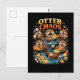 Eine spielerische Illustration von schelmischen Ottern, die im Wasser planschen und dabei Snacks, Spielzeug und Sommerspaß in einem Ausbruch von freudigem Chaos genießen.
