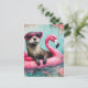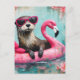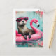 Otter Floating auf einem rosa Flamingo Funny Colla Postkarte