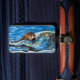 Postkartengröße Gemälde eines im Meer schwimmenden Otters. Ich malte dies mit meinem eigenen Foto für das Postcard Art Exhibit (Wohltätigkeit Art Sale).
