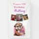 Pink Otter Thema Geburtstagsfeier Banner. Niedlicher Cartoon-Otter mit Geburtstagstorte. Fügen Sie den Namen des Kindes in den personalisierenden Bereich ein.