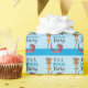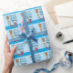 Whimsical Polka gepunktete Otter, die im Wasser gefroren wurden, auf blauem Party Geschenkpapier dargestellt.