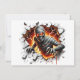 Dynamisch design van een griezelige mummie met gloeiende ogen, die door de muur breekt, perfect voor Halloween en horrorliefhebbers.