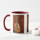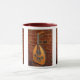 Diese Tasse kennzeichnet das fantastische oud. Es ist ein birnenförmiges aufgereihtes Musikinstrument, das nördlich in der afrikanischen und nahöstlichen Musik allgemein verwendet ist. Das moderne oud und der europäische Dichtungskitt sind ähnliche beide ziemlich. Das oud kann durch seinen Mangel an Gitterwerken und kleinerem Hals identifiziert werden. Es wird mit den komplexen, verwickelten Entwürfen im Schwarzen, Silber und Weiß verziert, die schön zum herrlichen goldenen Holz kontrastieren.
