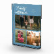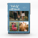 Modern and whimsical family memory photo block featuring 3 photos with a text that says "our family is all heart" with tiny hearts. Denim blue.