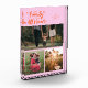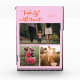 Modern and whimsical family memory photo block featuring 3 photos with a text that says "our family is all heart" with tiny hearts. Orange pink.