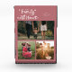 Modern and whimsical family memory photo block featuring 3 photos with a text that says "our family is all heart" with tiny hearts. Pink.