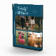 Modern and whimsical family memory photo block featuring 3 photos with a text that says "our family is all heart" with tiny hearts. Teal.