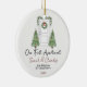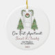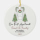 Celebrate your first apartment together with this beautifully illustrated Christmas ornament featuring a cozy front door, festive garlands, and watercolor trees. Personalize it with your names, address, and year to create a timeless keepsake that marks this exciting milestone. The hand-drawn line art and soft watercolor tones blend elegance and warmth, making it a thoughtful gift for couples starting a new chapter or celebrating their first holiday season in their new home. A meaningful decoration that captures love, joy, and new beginnings.