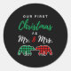 Our First Christmas As Mr. And Mrs. Buffalo Plaid Runder Aufkleber