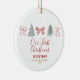 Celebrate your first Christmas together with this beautifully minimalist ornament featuring hand-drawn Christmas bows and winter trees. The soft festive artwork and elegant script lettering create a timeless keepsake for couples celebrating their first holiday season as “us.”