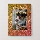 Our first Christmas orange red glitter photo year Button