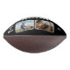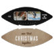 Our First Christmas Together 2 Photos Football. Rustic personalized football featuring 2 photos, modern and trendy typography saying Our first Christmas together, 3 white hearts, names and year on a rustic beige background. Add your names, 2 photos and year and make a lovely gift for your boyfriend who loves sports.