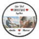 Our First Christmas Together 2 Photos Keepsake Hockey Puck. Modern personalized hockey puck featuring 2 photos, modern and trendy typography saying Our first Christmas together, 3 red hearts, names and year. Add your names, 2 photos and the year and make a lovely gift for your boyfriend or girlfriend.
