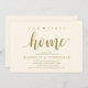 Our first home, new home housewarming party invitation card ("our first home") in yellow gold theme, with cute little heart. Planning a housewarming party in celebrating your new home with your family and friends? Invite your guests with this beautiful and perfect Rustic calligraphy themed housewarming party invitation card.