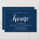 Our first home, new home housewarming party invitation card ("our first home") in navy blue theme, with cute little heart. Planning a housewarming party in celebrating your new home with your family and friends? Invite your guests with this beautiful and perfect Rustic calligraphy themed housewarming party invitation card.