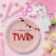 Our Little Love Bug is Turning Two Ladybug Paper Plates. Watercolor Ladybug 2nd Birthday Plates on Light Salmon Pink.
