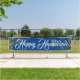 Dieses Urlaubsscanner wird im Outdoor-Stil gezeigt. Wählen Sie aus dem Innen- oder Außenbereich, mit oder ohne Kräutern. In Blau mit weißem Text "Happy Hanukkah" in einem extravaganten Drehbuch mit zwei goldfarbenen Wirbel von Sternen auf jedem Ende gezeigt. Passen Sie an oder kaufen Sie nach Ihren Vorstellungen.