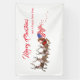 Select from indoor or outdoor, with or without grommets. Shown in white with red text "Merry Christmas" and "Happy New Year" in a fancy script