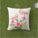 Dieses Akzent-Kissen im Freien wird mit einem tropischen Flamingos-Druck gezeigt. Color White Passen Sie dieses Objekt an oder kaufen Sie, wie es ist. Börsenbild freepik.com
