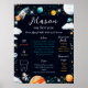 This bold galaxy milestone poster captures baby’s very first orbit around the sun in a fun, storytelling way. With rockets, planets, twinkling stars, and a floating astronaut, it turns precious first-year details into a cosmic keepsake. Perfect for space-themed birthdays and unforgettable photo backdrops.