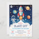 Outer Space Rocket Ship Astronaut Galaxy Birthday Einladung