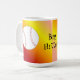 Ein lustiges Spieldesign. Weißes Baseball mit roten Stichen auf gelbem und orangefarbenem Hintergrund. Das Sprichwort 'Big Hitter' kann nach Wunsch auf etwas Anderes umgestellt werden.