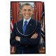 Barack Obama diente als 44. Präsident des Oval Office Partait der Vereinten Staaten. Seine Geschichte ist die amerikanische Geschichte; Werte aus dem Kernland, die Erziehung der Mittelschicht in einer starken Familie, harte Arbeit und Bildung als Mittel, voran zu kommen, und die Überzeugung, dass ein so gesegnetes Leben im Dienste anderer leben sollte. — Als Barack Obama 2008 zum Präsidenten gewählt wurde, wurde er zum ersten Afroamerikaner, der das Amt bekleidete. Die Verfasser der Verfassung hatten immer gehofft, dass sich unsere Führung nicht auf Amerikaner beschränken würde, die über Wohlstand oder Familienverbindungen verfügen. Vorbehaltlich der Vorurteile ihrer Zeit - viele von ihnen besaßen Sklaven - hätten die meisten keinen afroamerikanischen Präsidenten vorhergesehen. Obamas Vater Barack Sr., ein kenianischer Ökonom, traf seine Mutter Stanley Ann Dunham, als beide Studentinnen auf Hawaii waren, wo Barack am 4. August 1961 geboren war. Später scheideten sie sich, und Baracks Mutter verheiratet einen Mann aus Indonesien, wo er seine frühe Kindheit verbrachte. Vor der fünften Klasse kehrte er nach Honolulu zurück, um mit seinen Großeltern zu leben und an der Punahou Schule zu studieren. — In seinen Memoiren Dreams from My Vater (1995) beschreibt Obama die Komplexität der Entdeckung seiner Identität in der Jugend. Nach zwei Jahren an der Occidental Uni in Los Angeles wechselte er zur Columbia University, wo er Politikwissenschaft und internationale Beziehungen studierte. Nach dem Abschluss im Jahr 1983 arbeitete Obama in New York City und wurde dann ein Gemeindeorganisator auf der South Side von Chicago. Er koordinierte mit Kirchen die Wohnbedingungen und Set in einer von der Schließung von Stahlwerken schwer betroffenen Gemeinde Ausbildungsprogramme für den Arbeitsplatz auf. 1988 ging er zur Harvard Law School, wo er als erster afrikanischer Präsident der Harvard Law Review nationale Aufmerksamkeit erhielt. Nach seiner Rückkehr nach Chicago trat er einer kleinen Anwaltskanzlei bei, die sich auf zivile Rechte spezialisierte. — Im Jahr 1992 verheiratete Obama Michelle Robinson, eine Anwältin, die auch in Harvard Law hervorragend abgeschnitten hatte. Ihre Töchter Malia und Sasha waren 1998 bzw. 2001 geboren. Obama wurde 1996 in den Illinois-Senat gewählt, und dann im Jahr 2004 in den US-Senat. Auf dem Nationalkongress der Demokraten in diesem Sommer hielt er eine viel bejubelte Grundsatzrede. Einige Experten erklärten ihm sofort einen zukünftigen Präsidenten, aber die meisten erwarteten nicht, dass dies für eine Weile geschehen würde. Trotzdem wurde er 2008 mit 365 bis 173 Stimmen über den Senator von Arizona, John McCain, gewählt. Als designierter Präsident sah sich Obama vielen Herausforderungen gegenüber: einem wirtschaftlichen Zusammenbruch, Kriegen im Irak und Afghanistan und der anhaltenden Bedrohung durch den Terrorismus. Obama, der vor einer geschätzten Menschenmenge von 1,8 Millionen Einwohnern eingeweiht wurde, schlug beispiellose bundesstaatliche Ausgaben zur Wiederbelebung der Wirtschaft vor und hoffte auch, Amerikas Status in der Welt zu erneuern. Während seiner ersten Amtszeit unterzeichnete er drei wichtige Gesetzesentwürfe: einen allumfassenden Gesetzesentwurf zur Ankurbelung der Wirtschaft, Gesetze, die die Gesundheitsfürsorge leichter zugänglich und erschwinglich machen, und Gesetze zur Reform der nationalen Finanzinstitutionen. Obama drängte auch auf ein faires Lohngesetz für Frauen, Gesetze zur Finanzreform und Bemühungen zum Verbraucherschutz. Im Jahr 2009 wurde Obama der vierte Präsident, der den Friedensnobelpreis erhielt. — 2012 wurde er durch den ehemaligen Gouverneur von Massachusetts, Mitt Romney, mit 332 bis 206 Stimmen wiedergewählt. Der Nahe Osten blieb eine der wichtigsten außenpolitischen Herausforderungen. Obama hatte die Tötung Osama bin Ladens beaufsichtigt, aber während eines zivilen Krieges in Syrien entstand ein neuer, selbst ernannter islamischer Staat, der zu Terroranschlägen anfing. Obama versuchte, einen feindseligen Iran mit einem Vertrag zu steuern, der seine Entwicklung nuklearer Waffen behinderte. Die Regierung Obama adoptierte auch ein von 195 Nationen unterzeichnetes Klimaschutzabkommen, um die Treibhausgasemissionen zu verringern und die globale Erwärmung zu verlangsamen. — Im letzten Jahr seiner zweiten Amtszeit sprach Obama bei zwei Veranstaltungen, die ihn eindeutig bewegten: dem 50. Jahrestag des März der zivilen Rechte von Selma bis Montgomery und dem Engagement des Nationalen Museums für afroamerikanische Geschichte und Kultur. "Unsere Gewerkschaft ist noch nicht perfekt, aber wir werden nah", sagte er in Selma. "Und deshalb feiern wir", sagte er den Besuchern der Museumsöffnung in Washington, "eingedenk dessen, dass unsere Arbeit noch nicht getan ist."