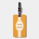Ein Gepäckanhänger in der Farbe orange mit Ihrem Monogramm auf einem weißen ovalen Schild mit einer Band. Aus Sicherheitsgründen sollten Sie Ihre Adresse niemals auf einem Gepäckschild sichtbar machen. Deshalb finden Sie auf der Rückseite nur für Ihren Namen, Telefonnummer und E-Mail-Adresse.