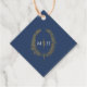 Ovales Kranz Blatt in Gold auf blauer Gastgeschenk Hochzeit oder danke Ihnen Tags. Fügen Sie Ihre eigenen Paare Monogramm-Initialen und ein Dankeschön-Nachricht auf der Rückseite. Klassische Marine dunkelblau und Gold und weiß kleine Gast Geschenkmarke. Andere Farben und passende Hochzeitsartikel sind erhältlich. © Original Blatt zeichn und Design von Sarah Trett für www.mylittleedenweddings.com auf Zazzle.