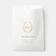 Ovales Kranz-Blatt-Design Gold, blau-weiße Gastgeschenk Hochzeit Taschen. Fügen Sie Ihre eigenen Paare Monogramm-Initialen, Name und Hochzeitsdatum in einem klassischen marineblau und gold und auf knusprig weiß. Reads Vielen Dank. Andere Farben und passende Hochzeitsartikel sind erhältlich. © Original Blatt zeichn und Design von Sarah Trett für www.mylittleedenweddings.com auf Zazzle.