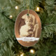 Eine hängende Verzierung der ovalgeschnittenen Keramik mit einem Kupfer färbte den Rahmen, der Ihre gehütete Fotografie unter ihr bedeckt. Der Rahmen und das Foto erscheinen auf beiden Seiten von der Verzierung. Es gibt eine Fahne mit einem Placeholder für Ihren Text (den Sie entfernen können). Obgleich es möglich ist, es auf verschiedenen geformten Verzierungen anzusehen, ist es speziell für das ovalgeschnittene verziert bestimmt.