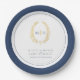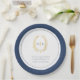 Handgezeichnet Blätter Gold mit dunkelblauem Text auf weißen Tellern. Personalisieren Sie Ihre eigenen Monogramm-Initialen Paarnamen und Ihre Hochzeit oder ein anderes Veranstaltungsdatum. Ideal für Ihre Gäste, um Ihre Hochzeit zu verbringen. Weitere passende Elemente und Farboptionen sind verfügbar. Original Kunst von Sarah Trett exklusiv für www.mylittleedenweddings.com auf Zazzle.