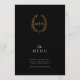 Schwarz-Weiß-Hochzeitsmenü. Bearbeiten Sie dieses einfache 4-Gang-Menü mit Ihrer eigenen Menüoption. Moderne und dennoch klassische handgezeichnete ovale Blätter und Monogramm-Design, Schwarz, Weiß und Gold. © Original oval zeichn und Design von Sarah Trett für www.mylittleedenweddings.com exklusiv auf zazzle.
