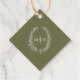 Ovales Kranz Blatt Olivgrün und Weiß Gastgeschenk Hochzeit oder danke Ihnen Tags. Fügen Sie Ihre eigenen Paare Monogramm-Initialen und ein Dankeschön-Nachricht auf der Rückseite. Olive grün und weiß kleine Gast Geschenkmarke. Andere Farben und passende Hochzeitsartikel sind erhältlich. © Original Blatt zeichn und Design von Sarah Trett für www.mylittleedenweddings.com auf Zazzle.