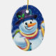 Ovale Weihnachtsbaumdekoration Snowman & tinsel. Keramik Ornament
