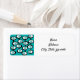 Diese Rücksendeadressen-Aufkleber haben ein modernes Design von Linien, die Kreise in den Ovalen bilden, die in Türkis, Schwarz und Weiß zusammengeschraubt sind.